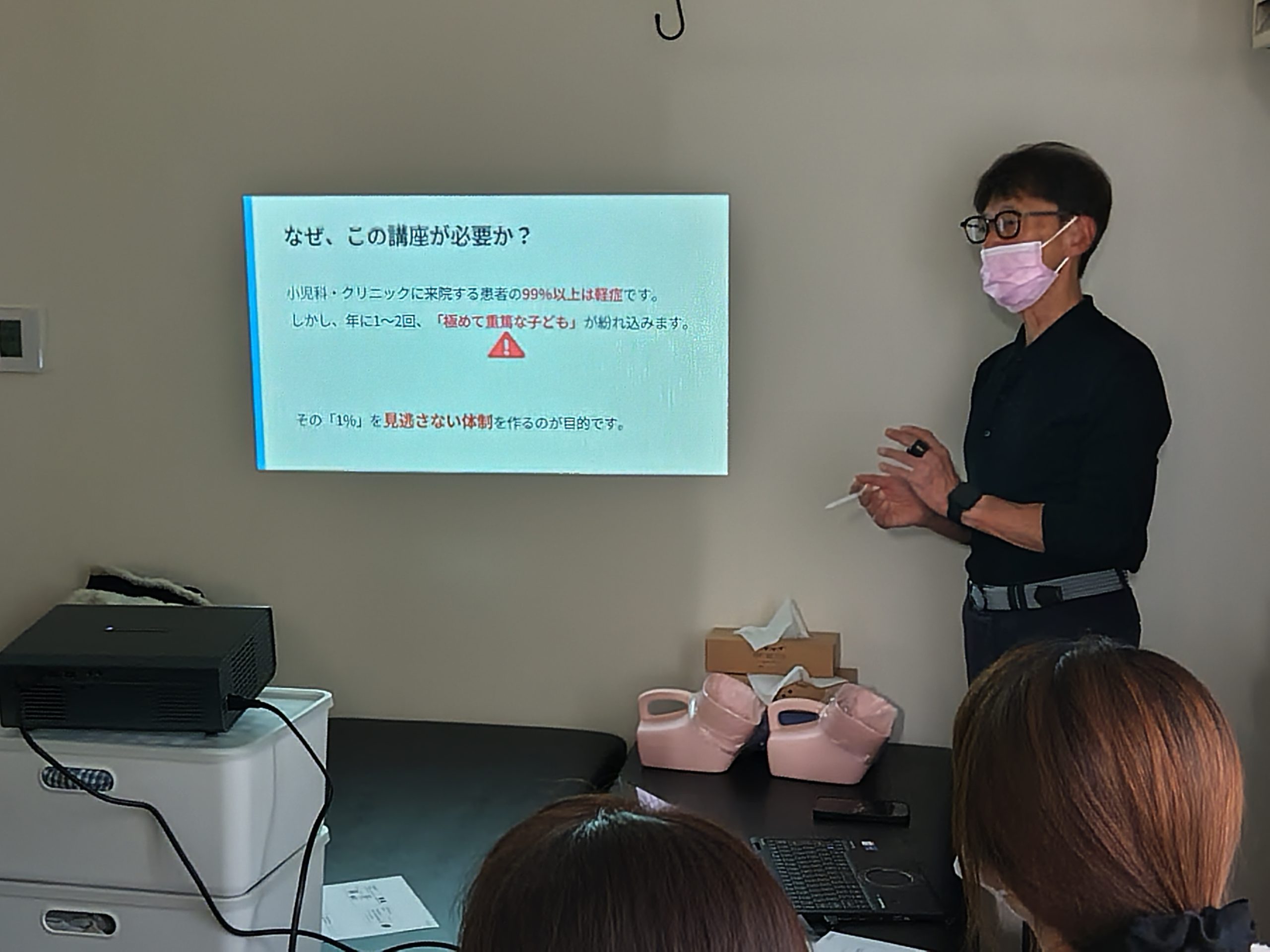 小児科クリニックを受診されるお子さんの多くは軽症ですが、ごく稀に一刻を争う重篤な状態のお子さんが隠れていることがあります。そのような「1%」の緊急事態を見逃さないために、医師だけでなく、受付事務や看護師がどのように「見る」べきかを学びました。